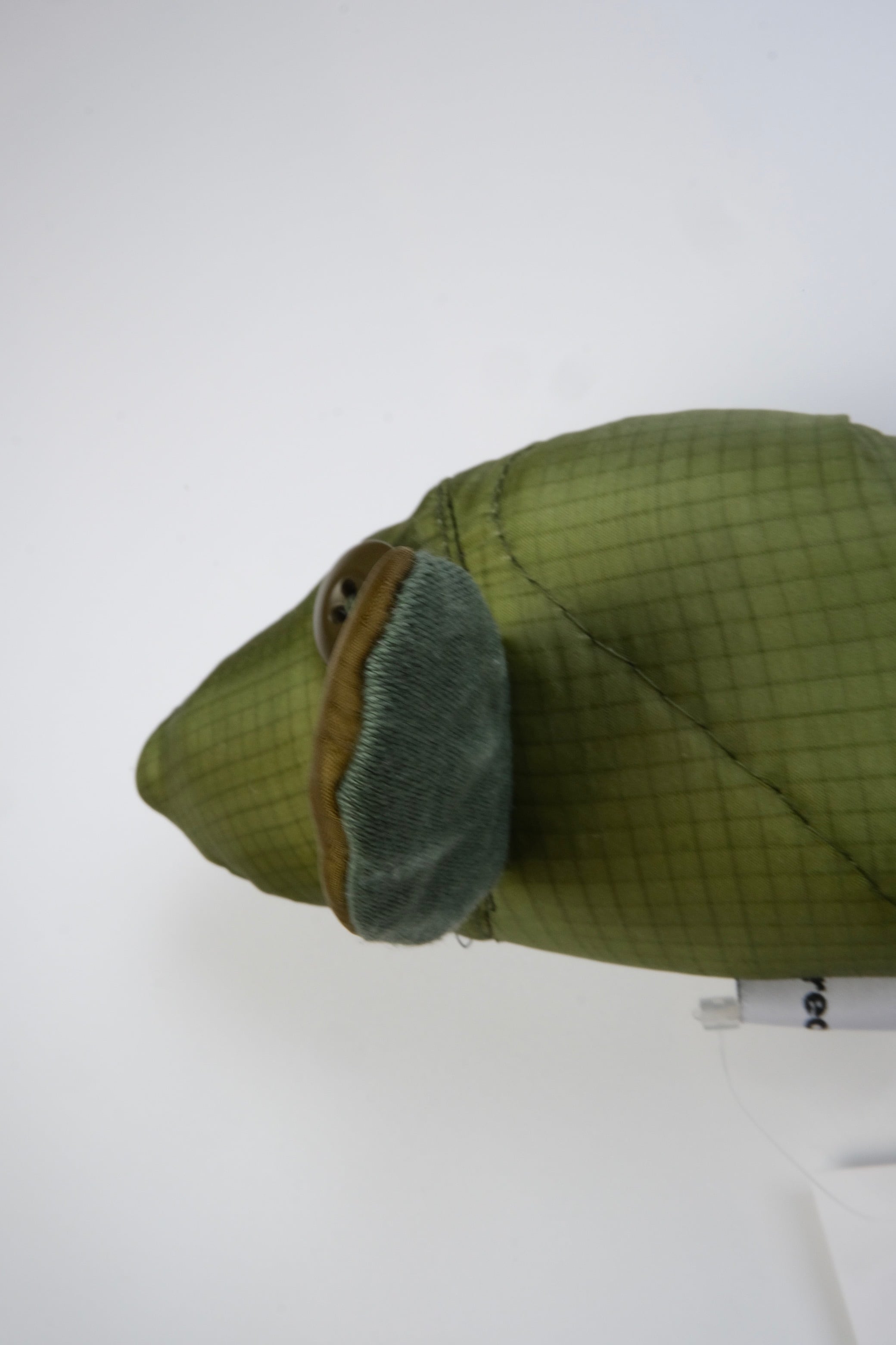 1点1点、丁寧に裁断を行い微配色のパッチワークで仕上げられた魚のぬいぐるみ。