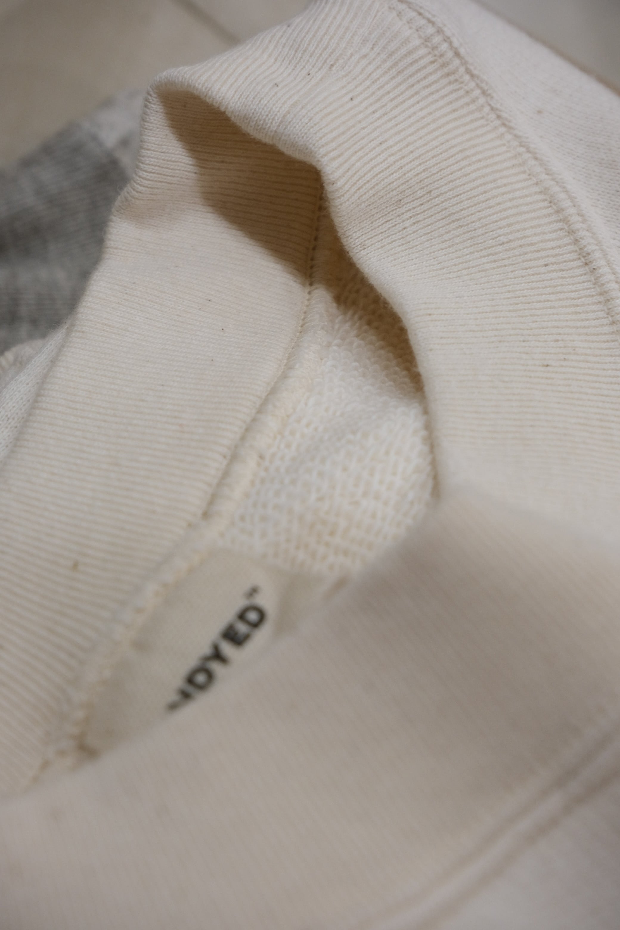 和歌山の古い吊り編み機で編みたてられたスウェットは、もちもちとした肌ざわりが特徴。